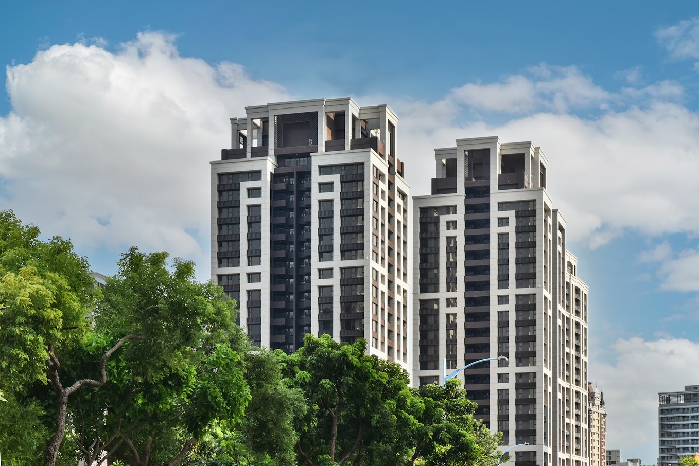 以 124 坪的尺度演繹減房哲學的最高境界。頂層20坪大露台提供絕佳的環景視野與隱私,結合深凹窗建築規劃與超過20米大面寬設計,讓餐廚與露台成為生活雙核心,成就一處擁有精細尺度規劃與建築美學的雲端生活。